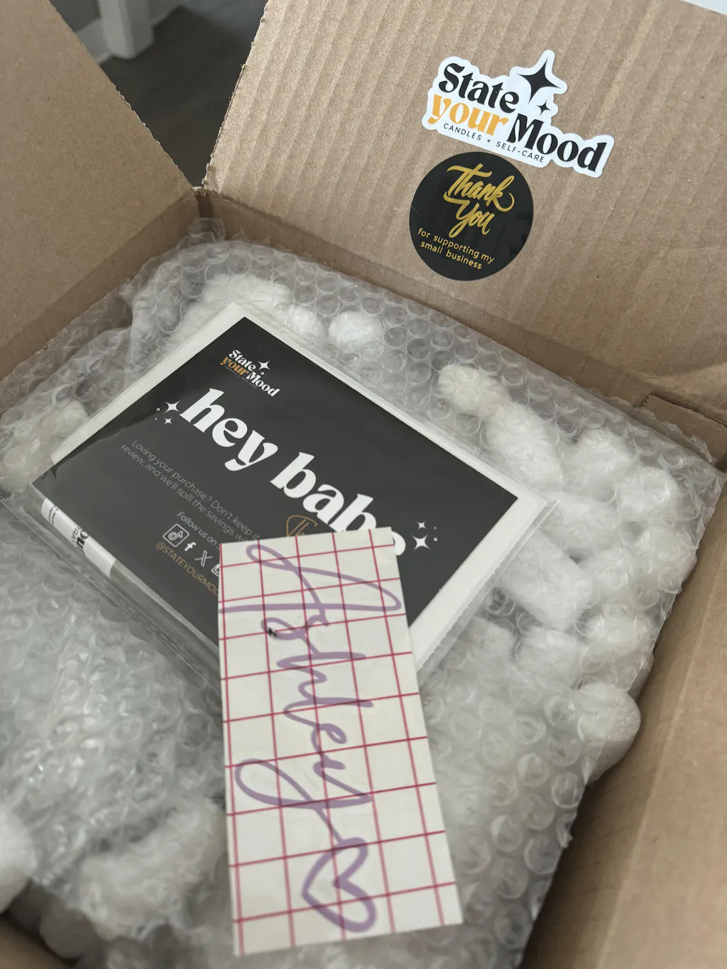 I was so happy when this arrived! I love the candle, the scent, and the throw on this candle is excellent. I appreciate so much the care that went into packing this.
